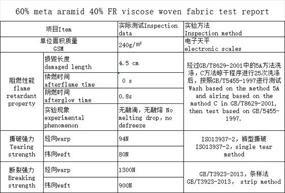 | مقاومة الحرارة: | 260 | كومبسيشن: | 60% مخدر ديد ميتا أرميد، 40% فيسكوز FR |